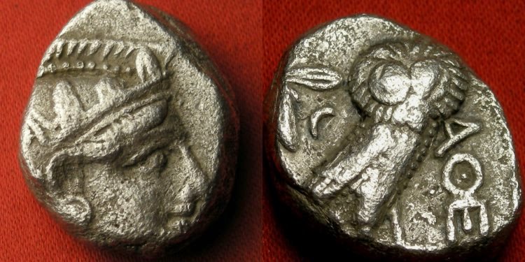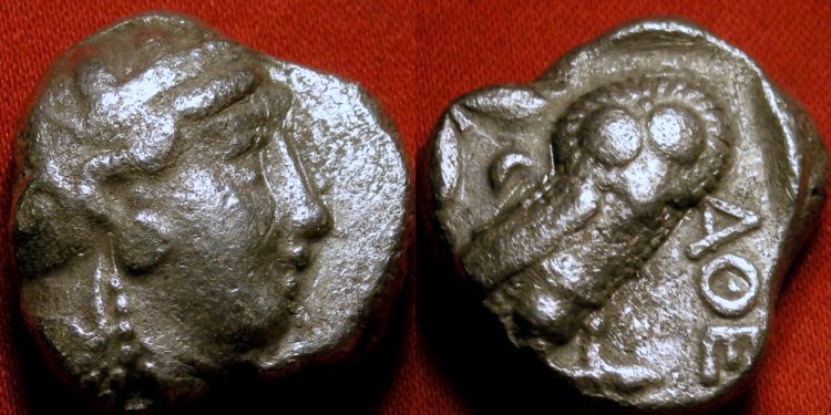 #10206: Tetradrachm of Athens, 4th Century BC, Historical Context: See above Obv: Athena her helmet