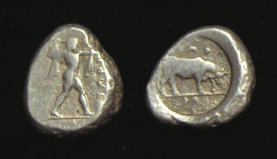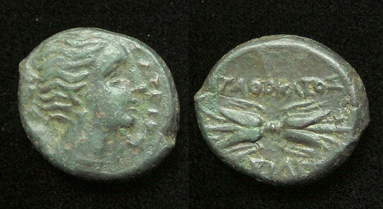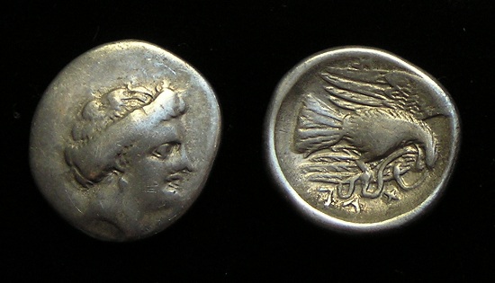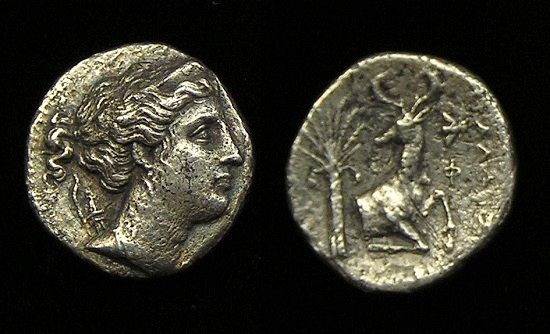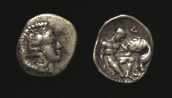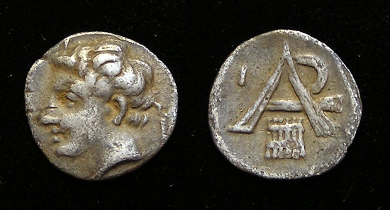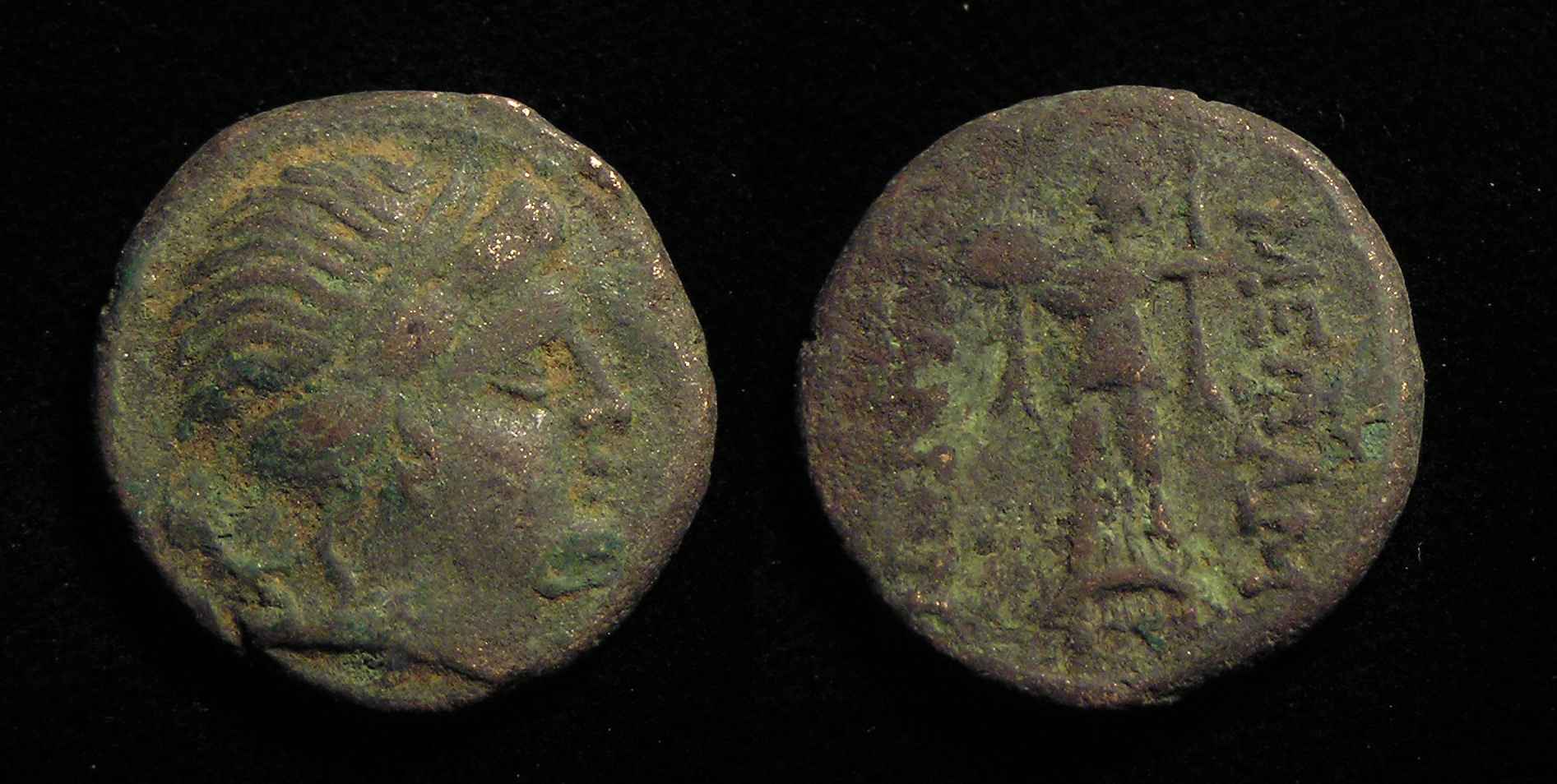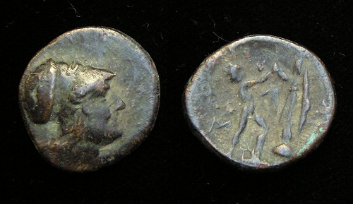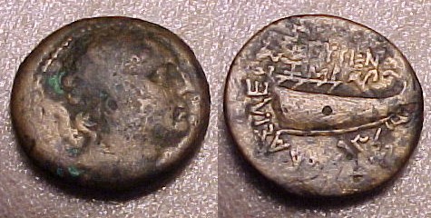 was a major large “island” south of mainland Obv: Poseidon standing holding Trident Spear