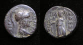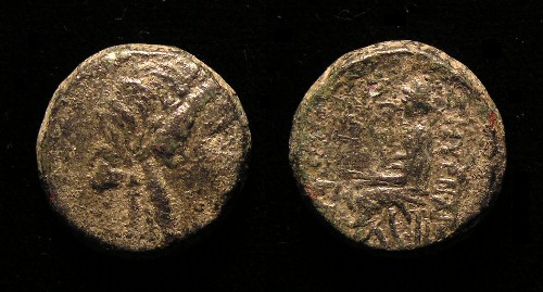 #10726: Bronze Coin - AE23, APAMEIA, 2nd Century BC Tyche (Greek Goddess of Good Luck) Roman Controlled Colony !! Historical Context: This coin was minted in Apameia, Phrygia (North Eastern area of the Mediterranean) about 133 to 48 BC. Apameia was founded by Antiochus I and named after his mother, Apama. Apameia became an trade and transport city being centrally located to many travel routes through Phrygia. Obv: Tyche (Greek Goddess of Good Luck) BUY NOW $59.95 plus shipping