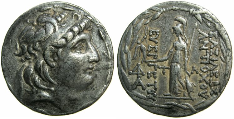 #5968: GREEK SILVER Tetradrachm SELEUKID DYNASTY, Demetrios II (First Reign) 145 to 140 BC Historical Context: See above Obv: Demetrios II SOLD $199 plus shipping