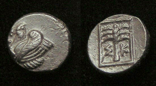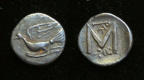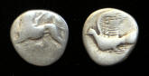 SILVER Triobol - 100 to 60 BC, Sikyon, Peloponnesos Historical Context: See above Obv: Dove Flying SOLD $149 plus shipping