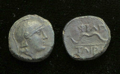 was founded jointly by Taras and Thourioi ( Obv: Athena in Crested Helmet, Hippocamp on Helmet
