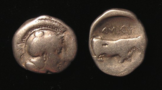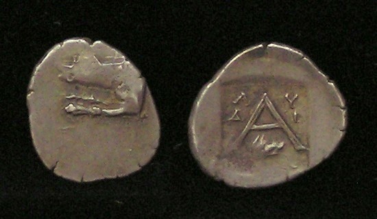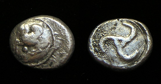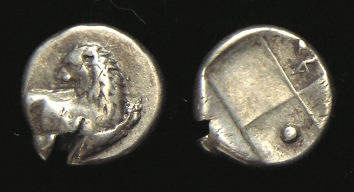 - 400 BC, LION ROARING !! Historical Context: These coins were minted in Thracian Cherronesos 400-350 BC. Thrace was just north and east of Macedonia on the Aegean Sea. Greek Colonists settled this area during the 8th and 7th centuries BC. The interior areas were primarily populated by the indigenous tribes. They became partially Hellenized by contact with the Greeks. Their contact with the Greeks was mainly in the form of trade. They had significant silver mines available and struck coins for mainly for trade purposes. Their coinage often depicted scenes "close to nature," which explains the Lion motif. Obv: Lion, Looking back SOLD $49.95 plus shipping