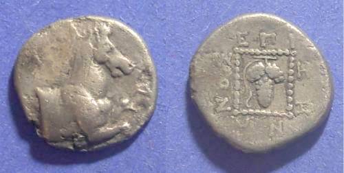 !! Area Famous for WINE !! Historical Context: These coins were minted in MARONEIA (Thrace) between 400-350 BC. This area was named after Maron, a priest of Apollo, who was featured in the Odyssey by Homer the Poet. Maroneia was noted for its fine quality wine. Thrace was a kingdom that was later founded by Lysimachos, 323-281 BC, who expanded its rule over much of Asia minor following the defeat of Antigonos the One-eyed. These coins predate that period. Obv: Prancing Horse SOLD $149 plus shipping