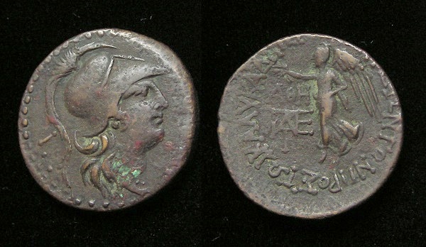 #10954: Bronze Coin - AE24, Seleukeia (Cilicia) 2nd to 1st Century BC Refers to Military Victory by the Seleukids (probably over Romans) Obv: Athena in