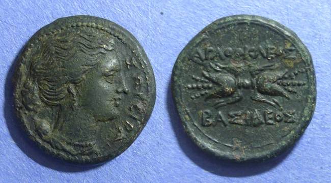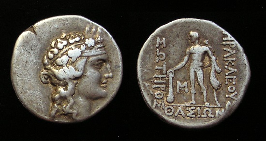 #0435: SILVER Hemidrachm - 2nd Cent BC, CAPPADOCIA -- Ariarathes VI Historical Context: This coin was minted in Cappadocia (Eastern Turkey) during the 2nd century BC. Obv: Ariarathes VI