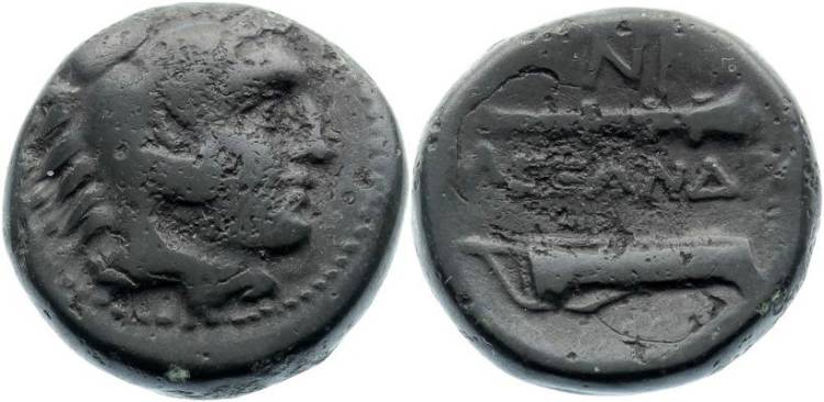 SKIN !! Historical Context: This coin was minted by the MACEDONIAN EMPIRE some the after the death of Alexander the Great, around 320-300 BC. The Macedonian empire was founded by Alexander I but carried forward by others including Philip II (Father of Alexander the Great) and ALEXANDER the GREAT. Philip II developed the army and tactics that enabled Alexander the Great to accomplish his victories. Alexander the Great is considered the greatest military general ever. After his death, many of regions conquered by Alexander minted coins of this motif in his honor. Obv: Alexander the Great as Herakles (Hercules). He is wearing a Lion Skin. The Lion Skin is from