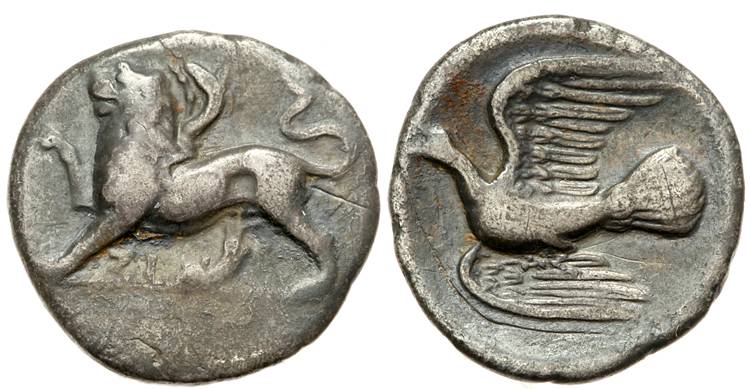 sanctuaries. This was the city of Obv: Griffen (Mythical creature) - Eagle head on Lion