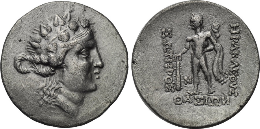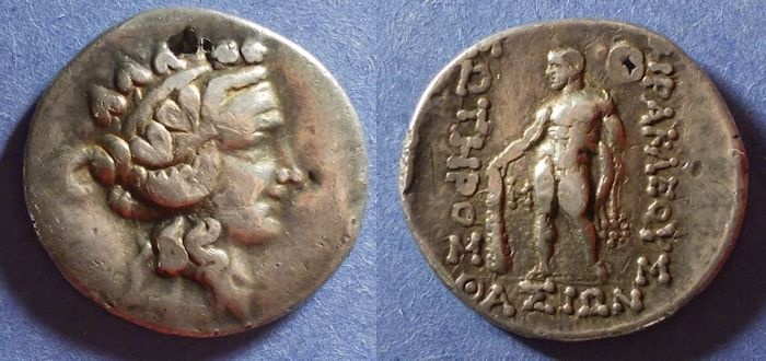 #11845: GREEK SILVER Tetradrachm - 140 BC, GOD of WINE !! and