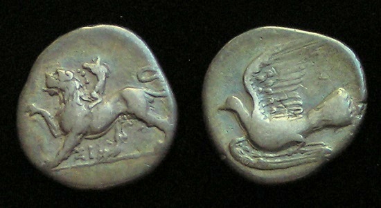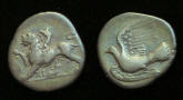 440 BC, PEGASUS Historical Context: Lycia was a region in Anatolia in what are now the provinces of Antalya and Muğla on the southern coast of Turkey. It was a federation of ancient cities in the region and later a province of the Roman Empire. The Lycian League founded in 168 BC was an early federation with democratic principles; these later influenced the United States Constitution. Obv: Pegasus (Mythical creature - Winged Horse) BUY