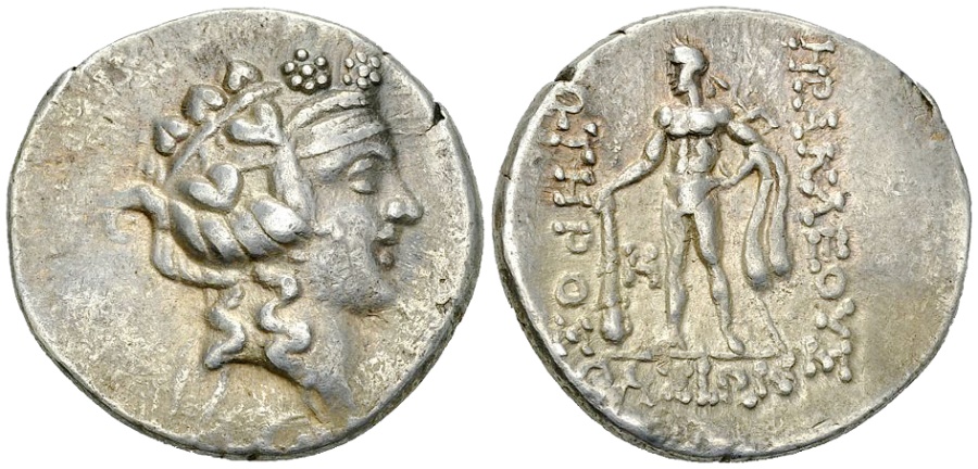 #11733: GREEK SILVER Tetradrachm - 140 BC, GOD of WINE !! and