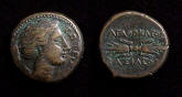 #6439: Bronze Coin - AE23, APAMEIA, 90 BC Zeus / Artemis Roman Controlled Colony !! Historical Context: This coin was minted in Apameia, Phrygia (North Eastern area of the Mediterranean) about 133 to 48 BC. Apameia was founded by Antiochus I and named after his mother, Apama. Apameia became an trade and transport city being centrally located to many travel routes through Phrygia. Obv: Zeus BUY NOW $69.95 plus shipping