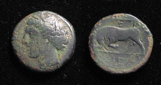 Historical Context: This coin was minted by the THESSALIAN LEAGUE around 196 to 146 BC. Following the great victory of the Roman General Flamininus over Philip V of Macedon, in 197 BC. The freedom of the Greeks was proclaimed at Corinth and a number of new autonomous coinages were initiated. Those in the name of the Thassalian Leagua were probably minted at Larissa. The Thessalian league was a loose confederacy of feudal like states run by a few great Thessalian families. The seat of the Thessalian diet was Larissa. Obv: Athena in Corinthian Helmet