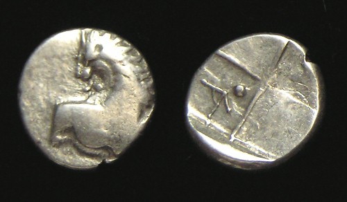 GREEK SILVER Tetrobol - 4th Cent BC, Prancing HORSE