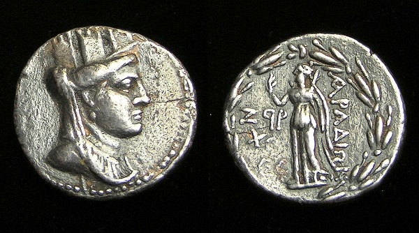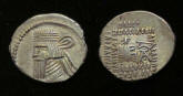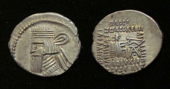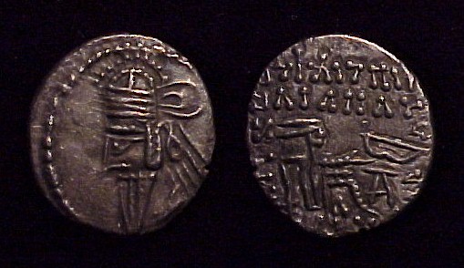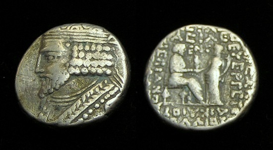 #11009: SILVER Tetradrachm, PARTHIA - 40 to 47 AD, NEMESIS of the ROMANS Historical Context: The Parthian Empire is a fascinating period of Persian history closely connected to Greece and Rome. Ruling from 247 B.C. to A.D. 228 in ancient Persia (Iran), the Parthians defeated Alexander the Great's successors, the Seleucids, conquered most of the Middle East and southwest Asia, controlled the Silk Road and built Parthia into an Eastern superpower. The Parthian empire revived the greatness of the Achaemenid empire and counterbalanced Rome's hegemony in the West. Parthia at one time occupied areas now in Iran, Iraq, Turkey, Armenia, Georgia, Azerbaidzhan, Turkmenistan, Afghanistan, Tajikistan, Pakistan, Syria, Lebanon, Jordan, Palestine and Israel. Obv: Vardanes I SOLD $179 plus shipping