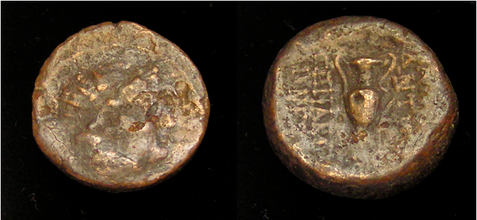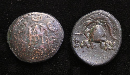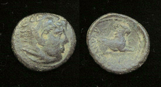 #10705: AE23 Bronze Coin - 125 to 75 BC, Historical Context: Lion