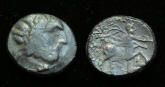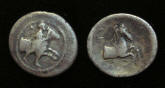 Tetradrachm - 2nd Century BC Bactria Historical Context: These coins were minted in Bactria, which may have formed part of the Median Empire, was subjugated by Cyrus the Great. However, after Darius III of Persia had been defeated by Alexander the Great (about 340 BC) and killed in the ensuing chaos, Alexander marched onto Bactria and Bactria became a province of the Macedonian empire. After Alexander's death they came under the rule of Seleukus, an ex-General of Alexander and a Hellenistic Greek King. Obv: Horseman