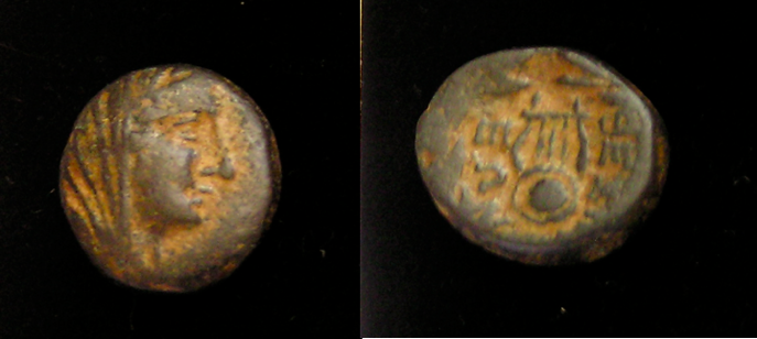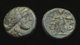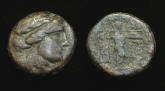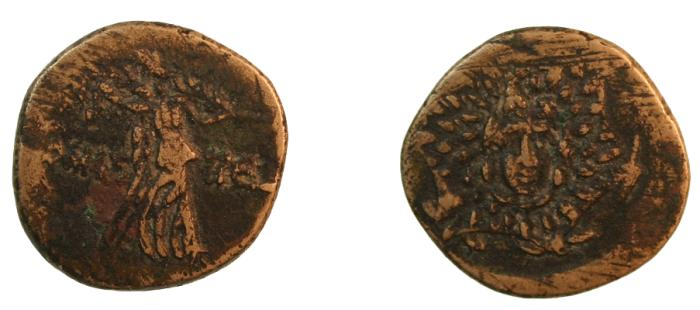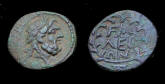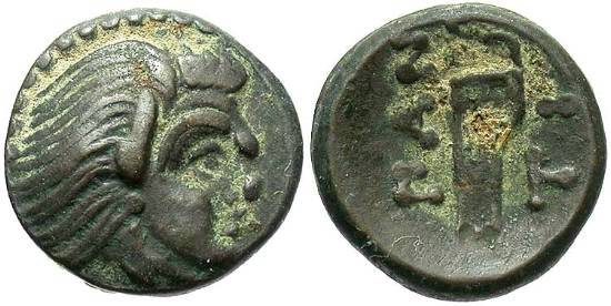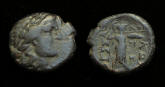 #10722: AE14 - 2nd Century BC Ancient Phonenicia Historical Context: Marathos or Marathus, was an ancient city located near Tartous in Syria. It was founded during the Amorites period, 3rd millennium BC. The city was known as Amrit or Amurre in ancient Canaanite. In the time of Alexander the Great, Amrit was known by the Greek name of Marathos (or the Latin equivalent Marathus). It was one of the biggest cities in the East.