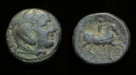 to 297 BC, Herakles / Horseman Reign of Kassander !! Historical Context: This coin was minted by the MACEDONIAN Empire during the reign of Kassander, 319 to 297 BC. Obv: Herakles clad in Lionskin BUY NOW $59.95 plus shipping