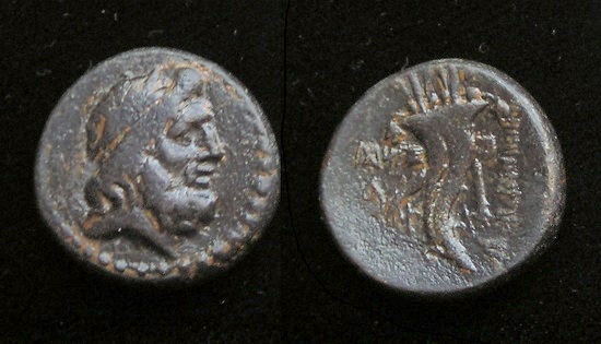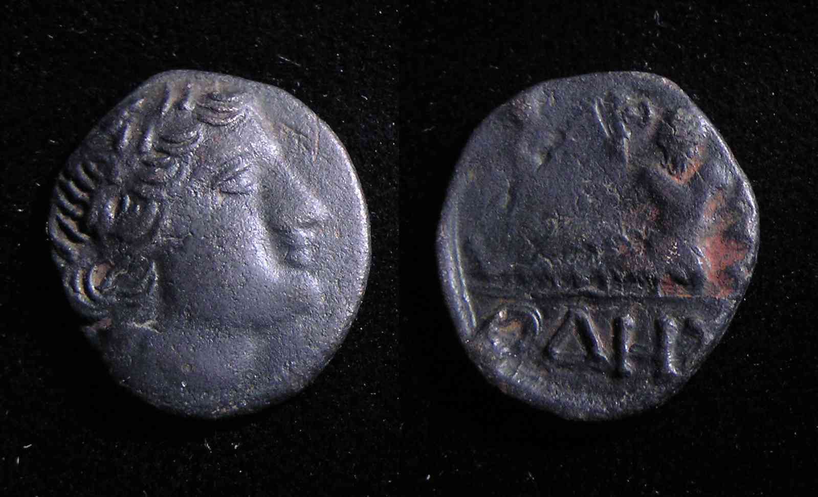 #10288: Greek BRONZE - 2nd Century BC, Thyatira (Lydia) - RARE Area of One of the Seven Churches of the Book of Revelation Historical Context: These coins were minted in Thyateira (also Thyatira) is the name of the modern Turkish city of Akhisar ("white castle"). The name comes from Koine Greek "Θυάτειρα" (Thuateira). It lies in the far west of Turkey, south of Istanbul and almost due east of Athens. It is about 50 miles (80 km) from the Mediterranean. In early Christian times Thyateira was home to a significant Christian Church, mentioned as one of the seven Churches of the Book of Revelation in the Book of Revelation. The Apostle Paul and Silas might have visited Thyateira during Paul's second or third journey, although the evidence is entirely circumstantial. Obv: Apollo SOLD $69.95 plus shipping