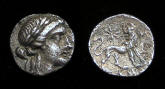#11796: Silver Drachm - late 3rd Century BC, Historical Context: See above Obv: Helios with Radiate Crown BUY NOW $199 plus shipping
