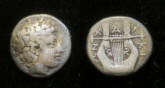 #11491: SILVER Heimdrachm, 1st Century BC Macedonia, Lycian League Historical Context: See above Obv: Laurated Head of Apollo BUY NOW $169 plus shipping