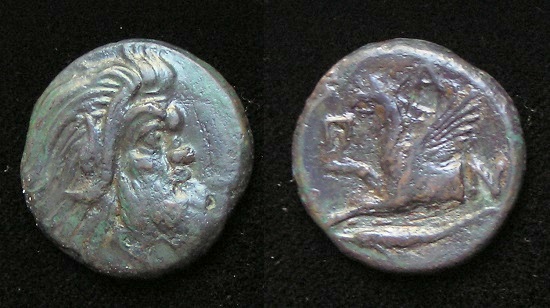 #11462: Pantikapaion AE25 - 4th and 3rd Century BC, Greek God PAN Historical Context: This