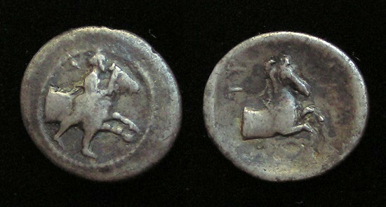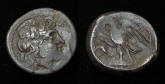 #11591: Silver Tetrobol - 5th Cent BC, Historical Context: This coin was minted by the MACEDONIAN Empire in the 5ht century BC. Obv: Horseman SOLD $199 plus shipping