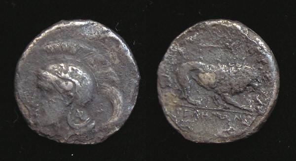 coin was minted in PHARASALOS, Obv: Athena in Helmet BUY NOW $59.95 plus shipping