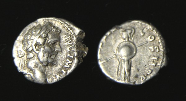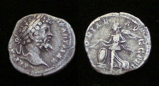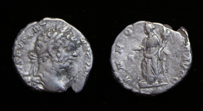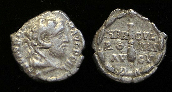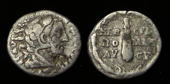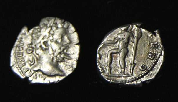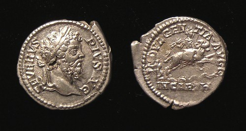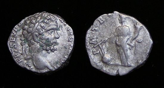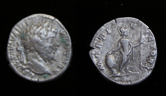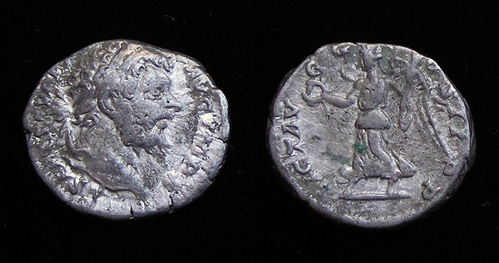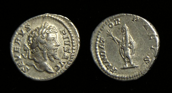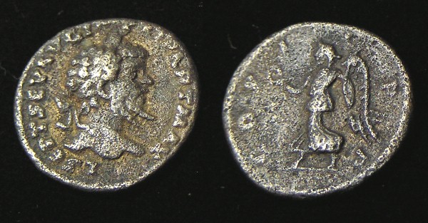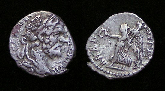 SILVER Denarius or Bronze Core of Fourrie Septimus Severus, 193 to 211 AD with Victory !! ex Wayne Sayles Historical Context: See above "Historical Context." Obv: Septimus Severus SOLD $19.95 plus shipping