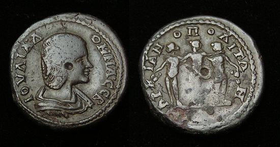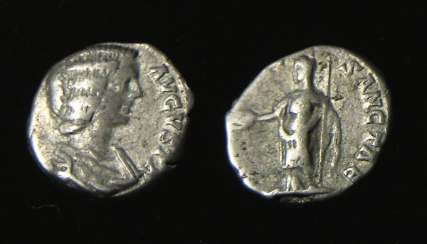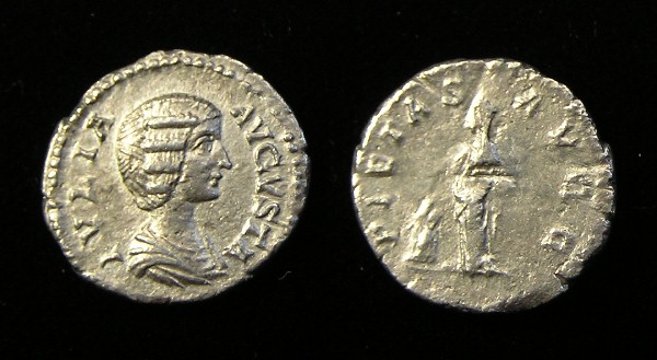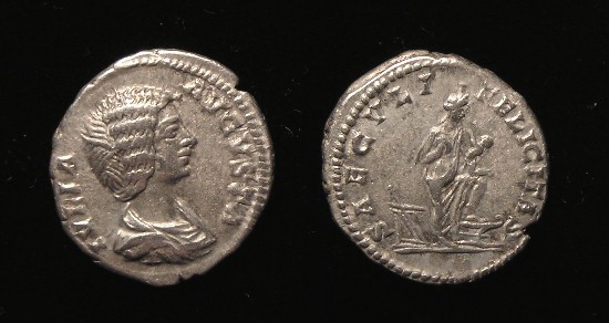 SILVER Denarius - 198 AD, Julia Domna - Wife of Septimus Severus Pietas Historical Context: See above "Historical Context." In addition, she was one of the most powerful women to serve Rome. She engineered the accession of her nephews after the deaths of her sons, Geta and Caracalla. Obv: Julia Domna BUY NOW $69.95 plus shipping