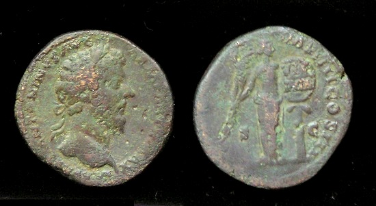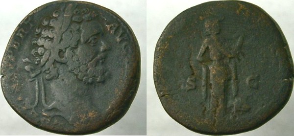 #10066: Bronze Sestertius Septimus Severus, 193 to 211 AD with Victory !! RARE Reverse Type with AFRICA Historical Context: See above "Historical Context." Obv: Septimus Severus SOLD $149 plus shipping
