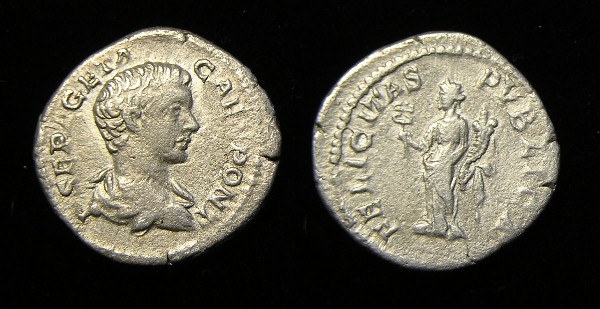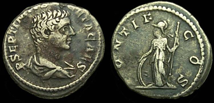 #10214: ROMAN Denarius, Historical Context: See above "Historical Context." Obv: Geta BUY NOW $99.95 plus shipping