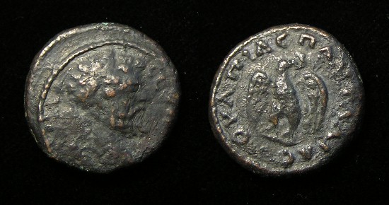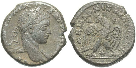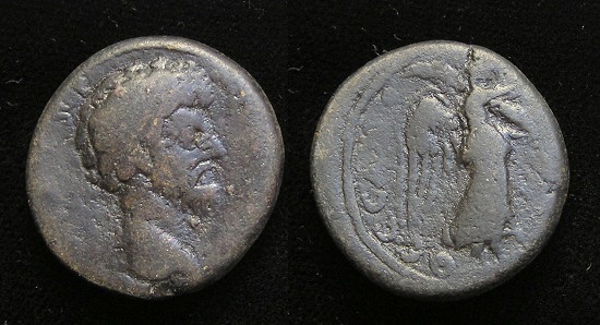 #10121: Provincial Bronze Unit Septimus Severus, 193 to 211 AD with Eagle Historical Context: See above "Historical Context." Obv: Septimus Severus