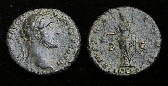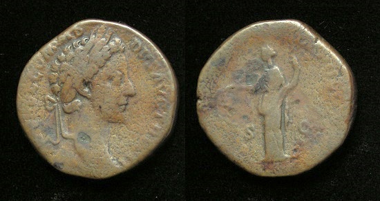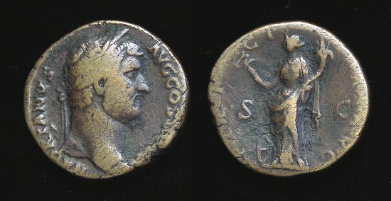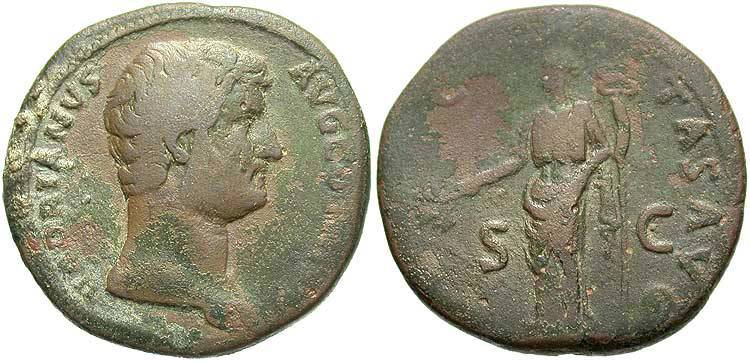 HADRIAN Builder of the Great Wall Across England 117 to 138 AD Historical Context: These coins were minted by the ROMAN EMPIRE during the reign of HADRIAN A.D. 117 - 138. P. Aelius Hadrianus, having lost his father he was placed under the care of a guardian, Trajan, a future emperor of Rome. In 100 he married Trajan's grand-niece, Sabina, and he was adopted by Trajan. Upon Trajan's passing, Hadrian assumed the throne. He is best known as the builder of the great wall across England from the Tyne to the Solway. His rule was firm and humane. He was also a patron of the arts and his palace is one of the most well regarded amongst Roman Emperors. He later adopted Antoninus Pius as his heir, whom succeeded him. They are known as the adoptive emperors. This was the Golden Era of Rome.