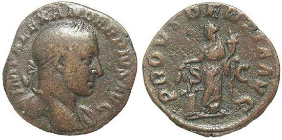 #11531: Bronze Sestertius - 225 to 235 AD, Severus Alexander Providentia (Roman "Foresight") Historical Context: See above "Historical Context." Obv: Severus Alexander BUY NOW $99.95 plus shipping