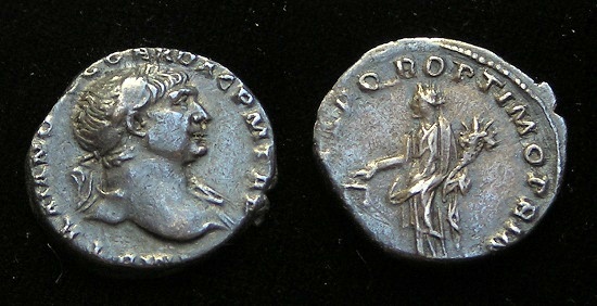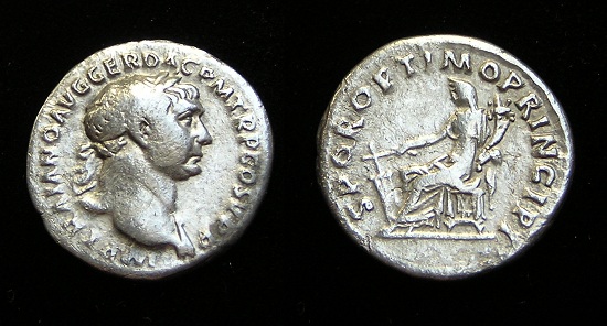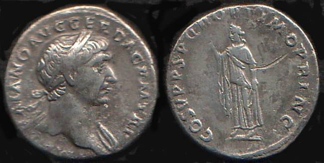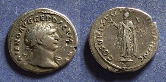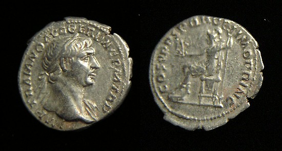 #9593: Denarius, TRAJAN, 98 to 117 AD, Historical Context: See above "Historical Context." Obv: Trajan SOLD