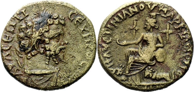 #11006: Provincial Bronze Unit Septimus Severus, 193 to 211 AD with Jupiter Seated!! SHARP !! Historical Context: See above "Historical Context." Obv: Septimus Severus SOLD $69.95 plus shipping