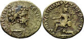 CARACALLA 198 to 217 AD Historical Context: This coin was minted by the ROMAN EMPIRE (Greek Colony) during the reign of CARACALLA (198-217 AD). M. Aurelius, originally named Bassianus, the elder son of Severus. In 198 was created Augustus, although only ten years of age. On the death of Severus, Caracalla reigned jointly with his brother Geta. However, he had Geta assassinated, reportedly while in the arms of his mother. His reign was marked by extravagance and cruelty. He achieved more by treachery than by force of arms. He had his portrait (as an adult) potrayed with a skowl so that the Roman people would fear him. The one notable action attributed to him, was giving to all free inhabitants of the Empire the privileges of Roman citizens. He was part of the SEVERAN DYNASTY, which lasted a number of generations and included some of the oddest people ever to rule Rome. Obv: Rheskuporis
