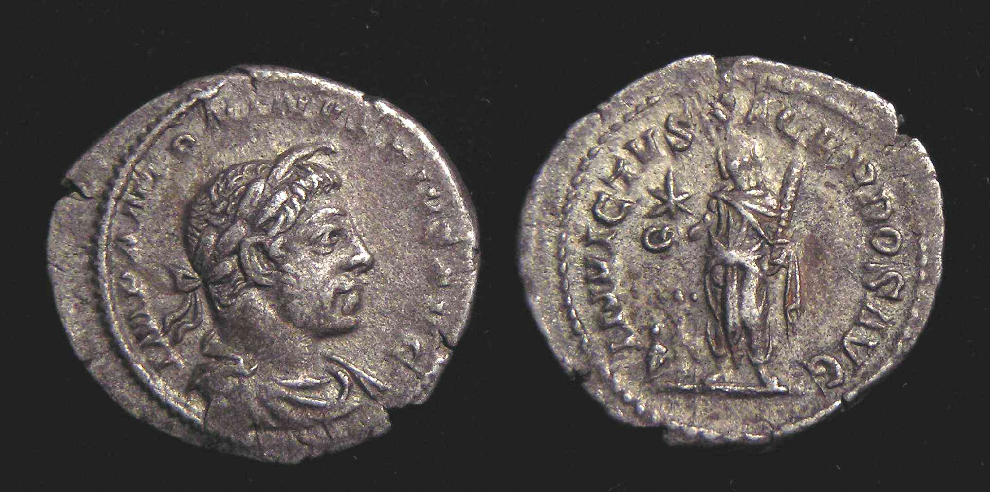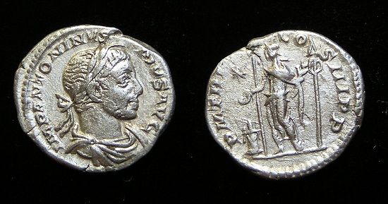 #9844: SILVER Denarius - 220 AD, ELAGABALUS Historical Context: See above "Historical Context." Obv: Elagabalus