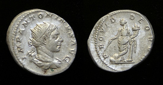 #11237 SILVER Antoninianus - 220 AD, ELAGABALUS Rarer Denomination for the Emperor Historical Context: See above "Historical Context." Obv: Elagabalus