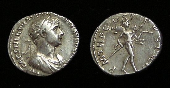 #11353: Denarius, TRAJAN, 98 to 117 AD, Mars, Nude Walking with Trophy Historical Context: See above "Historical Context." Obv: Trajan SOLD $129 plus shipping