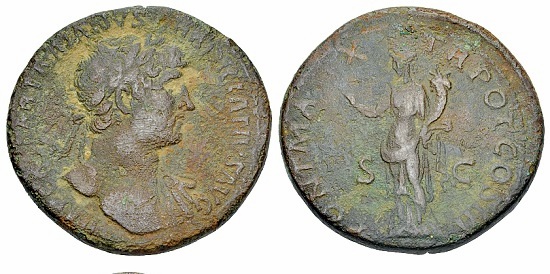 #7366: Bronze Sestertius, Ex-CNG Historical Context: See above "Historical Context." Obv: Hadrian