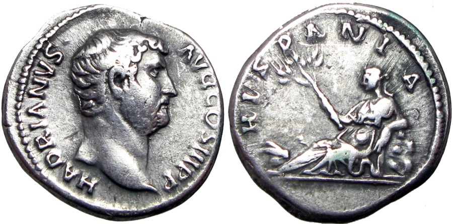 #11366: Silver Denarius, Hadrian Travel Series Historical Context: See above "Historical Context." Obv: Hadrian BUY NOW $199 plus shipping