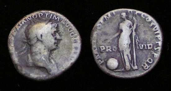 #11476: Denarius, TRAJAN, 98 to 117 AD, Roman Personification of Foresight Historical Context: See above "Historical Context." Obv: Trajan SOLD $49.95 plus shipping