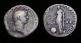 #11065 Denarius, TRAJAN, 98 to 117 AD, Bare-chested Woman holding Wheel Announces Completion of Road Project Historical Context: See above "Historical Context." Obv: Trajan SOLD $119 plus shipping