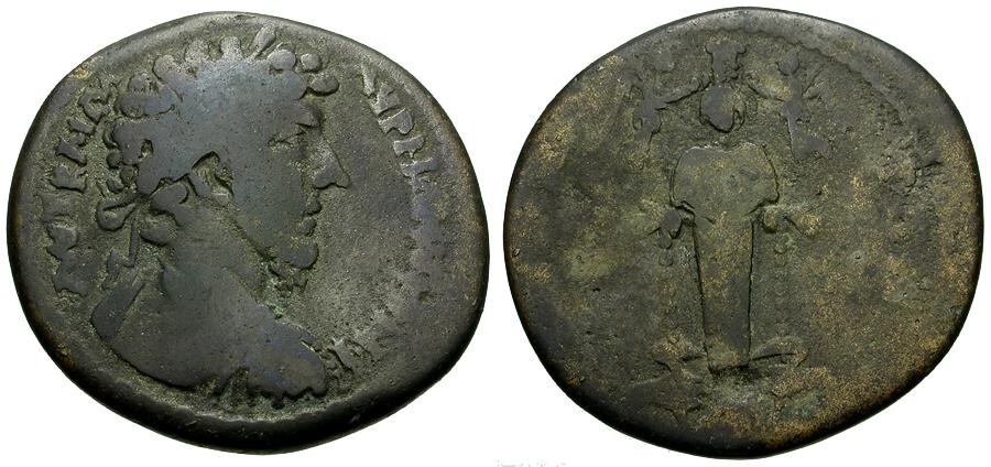 #11655: Bronze As, TRAJAN, 98 to 117 AD with Victory Placing Wreath Historical Context: See above "Historical Context." Obv: Trajan BUY NOW $139 plus shipping