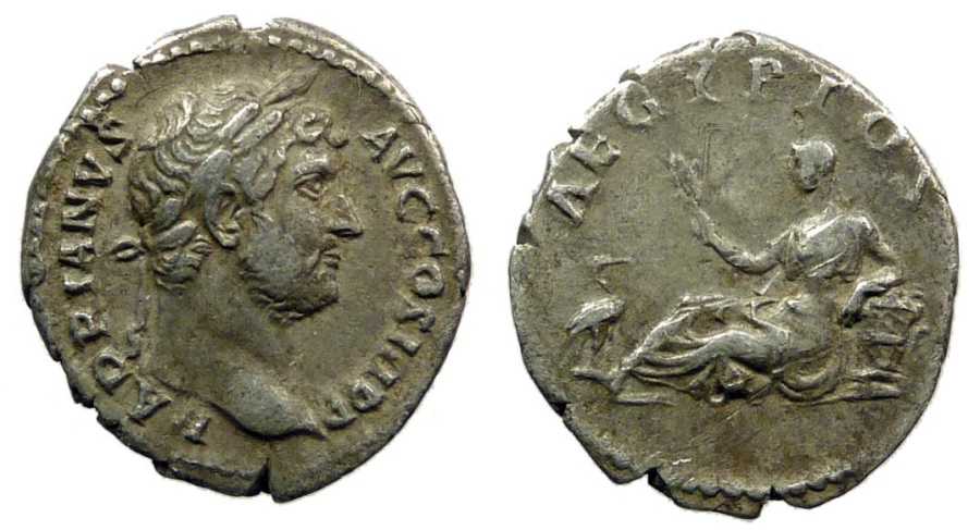 #11590: Silver Denarius, Hadrian Travel Series Historical Context: See above "Historical Context." Obv: Hadrian BUY NOW $279 plus shipping