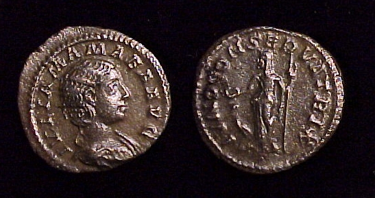 #4509: SILVER Denarius - 230 AD, Julia Mamaea (Mother of Severus Alexander) Juno with Her Peacock Rev. Historical Context: See above "Historical Context." Obv: Julia Mamaea (Mother of Severus Alexander) BUY NOW $39.95 plus shipping