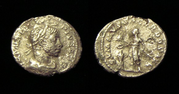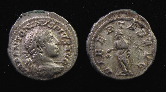 #9887: SILVER Denarius - 220 AD, ELAGABALUS /FELICITAS Historical Context: See above "Historical Context." Obv: Elagabalus